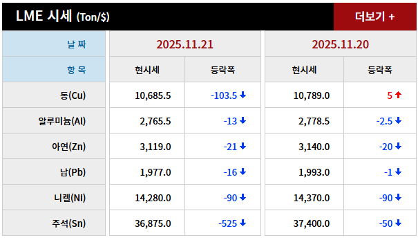 2025년 11월 21일 字 가격동향 본문 2025년 11월 21일 字 가격동향 목록 2025년 11월 24일 字 가격동향 25.11.25 2025년 11월 20일 字 가격동향 25.11.21
