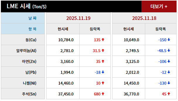 2025년 11월 19일 字 가격동향 본문 2025년 11월 19일 字 가격동향 목록 2025년 11월 20일 字 가격동향 25.11.21 2025년 11월 18일 字 가격동향 25.11.19