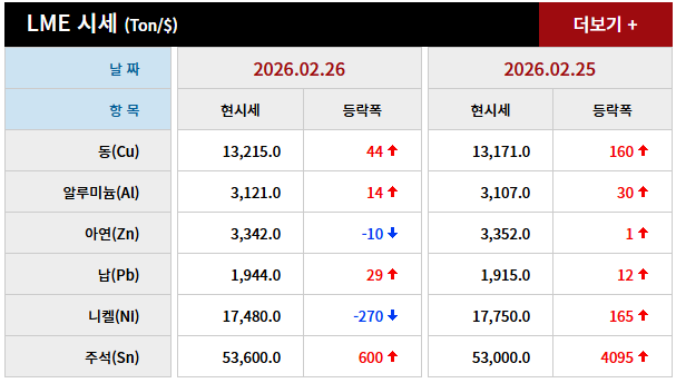 2026년 02월 26일 字 가격동향 본문 2026년 02월 26일 字 가격동향 목록 2026년 02월 27일 字 가격동향 26.02.28 2026년 02월 25일 가격동향 26.02.26