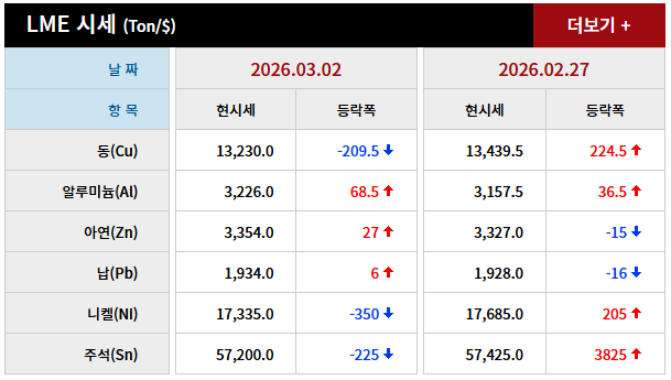 2026년 03월 02일 字 가격동향 본문 2026년 03월 02일 字 가격동향 목록 2026년 03월 03일 字 가격동향 26.03.04 2026년 02월 27일 字 가격동향 26.02.28