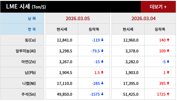 2026년 03월 05일 字 가격동향 본문 2026년 03월 05일 字 가격동향 목록 2026년 03월 06일 字 가격동향 26.03.07 2026년 03월 04일 字 가격동향 26.03.05