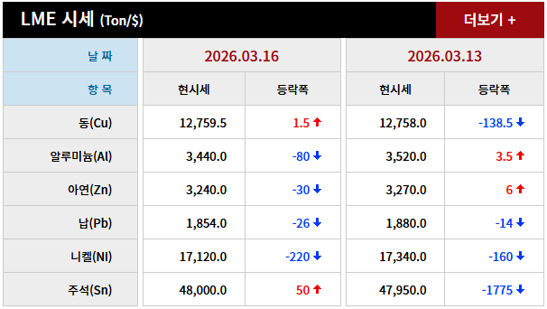 2026년 03월 16일 字 가격동향 본문 2026년 03월 16일 字 가격동향 목록 2026년 03월 17일 字 가격동향 26.03.18 2026년 03월 13일 字 가격동향 26.03.14