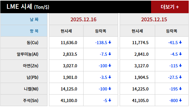 2025년 12월 16일 字 가격동향 본문 2025년 12월 16일 字 가격동향 목록 2025년 12월17일 가격동향 25.12.18 2025년 12월 15일 字 가격동향 25.12.16