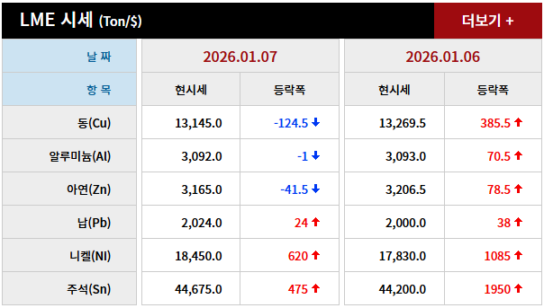 2026년 01월 07일 字 가격동향 본문 2026년 01월 07일 字 가격동향 목록 2026년 01월 08일 字 가격동향 26.01.09 2023년 01월 06일 字 가격동향 26.01.07