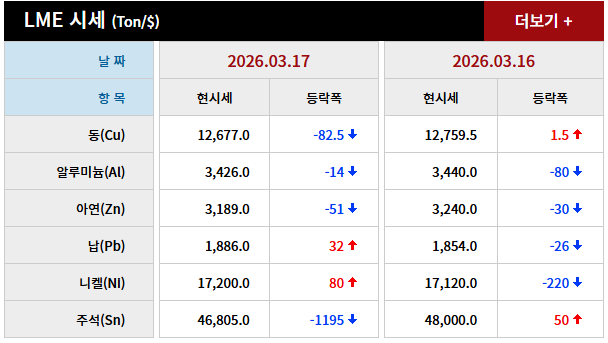 2026년 03월 17일 字 가격동향 본문 2026년 03월 17일 字 가격동향 목록 2026년 03월 18일 字 가격동향 26.03.19 2026년 03월 16일 字 가격동향 26.03.17