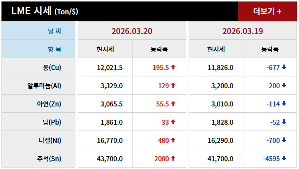 2026년 03월 20일 字 가격동향