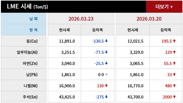 2026년 03월 23일 字 가격동향 본문 2026년 03월 23일 字 가격동향 목록 2026년 03월 24일 字 가격동향 26.03.25 2026년 03월 20일 字 가격동향 26.03.21