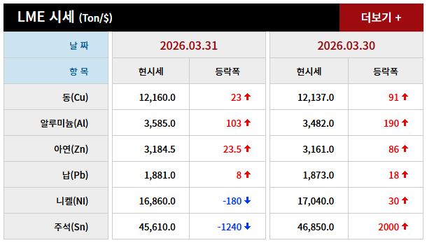 2026년 03월 31일 字 가격동향 본문 2026년 03월 31일 字 가격동향 목록 2026년 04월 01일 字 가격동향 26.04.02 2026년 03월 30일 字 가격동향 26.03.31
