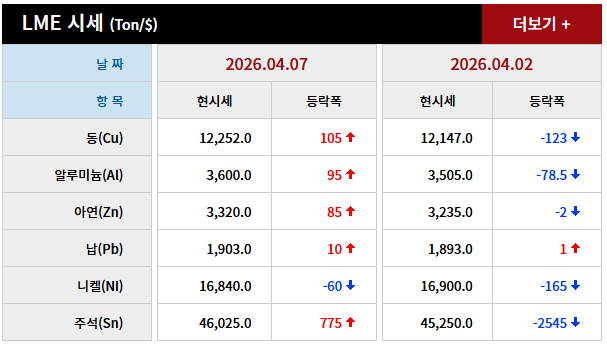 2026년 04월 07일 字 가격동향 본문 2026년 04월 07일 字 가격동향 목록 2026년 04월 08일 字 가격동향 26.04.09 2026년 04월 02일 字 가격동향 26.04.03