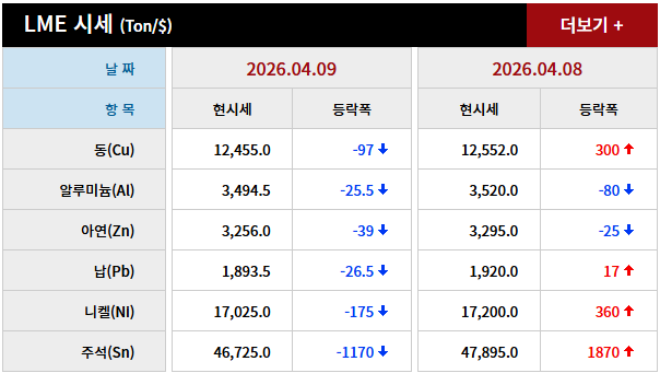 2026년 04월 09일 字 가격동향 본문 2026년 04월 09일 字 가격동향 목록 2026년 04월 10일 字 가격동향 26.04.11 2026년 04월 08일 字 가격동향 26.04.09