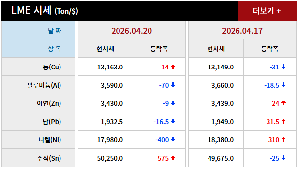2026년 04월 20일 字 가격동향